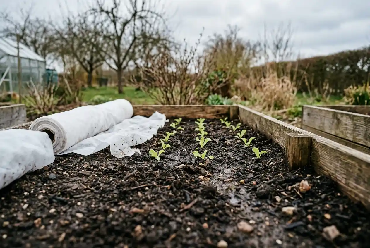 - Ein Vlies schützt Jungpflanzen bei spätem Nachtfrost und wärmt den Boden vor der Aussaat vor.