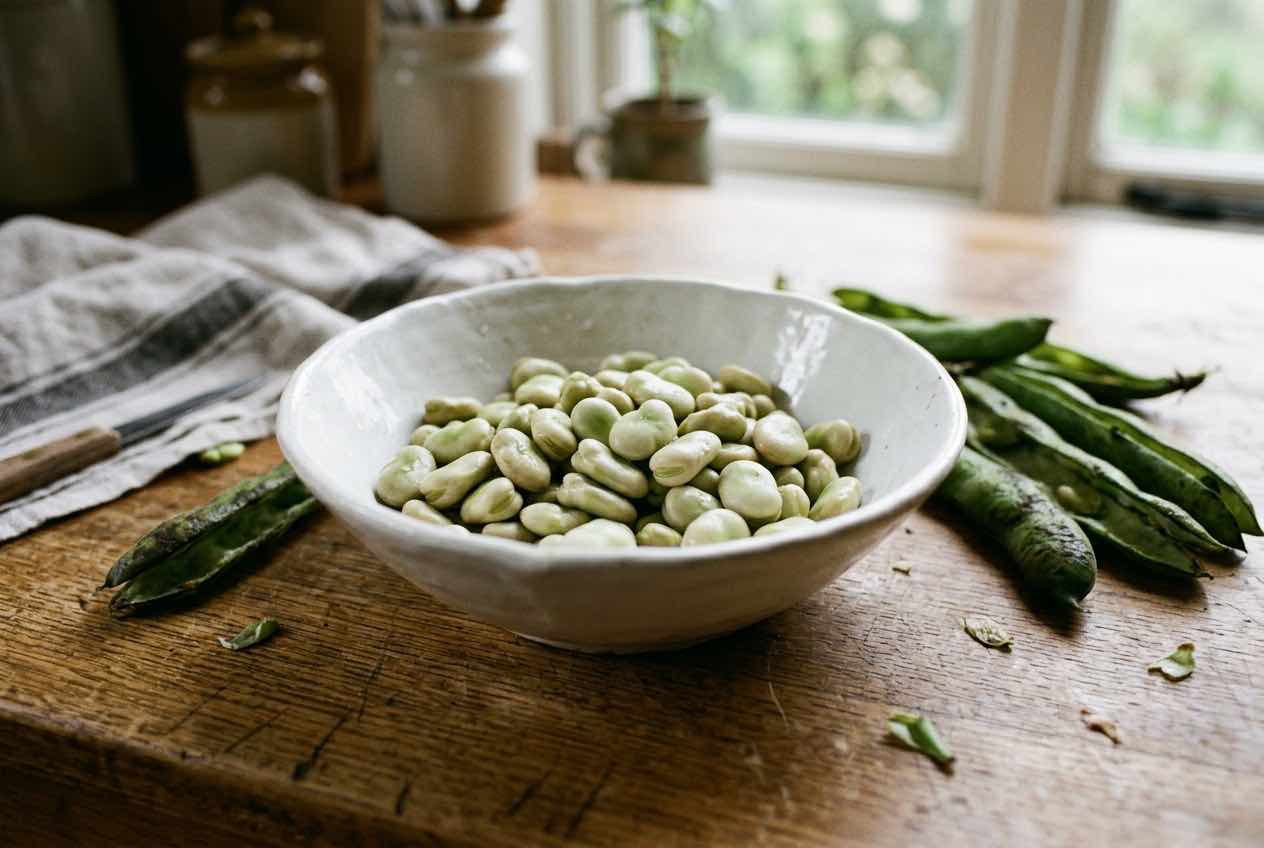 Reife Bohnen kurz in Salzwasser blanchieren (2 Minuten), dann in Eiswasser abschrecken. Danach lässt sich die graue Außenhaut jeder Bohne leicht abziehen. So werden sie zarter und bekömmlicher. Anschließend in Butter oder Olivenöl schwenken, mit Salz und Pfeffer abschmecken. Sie passen hervorragend zu geräuchertem Speck, frischen Kräutern, in Suppen, Eintöpfen oder als warmer Salat.