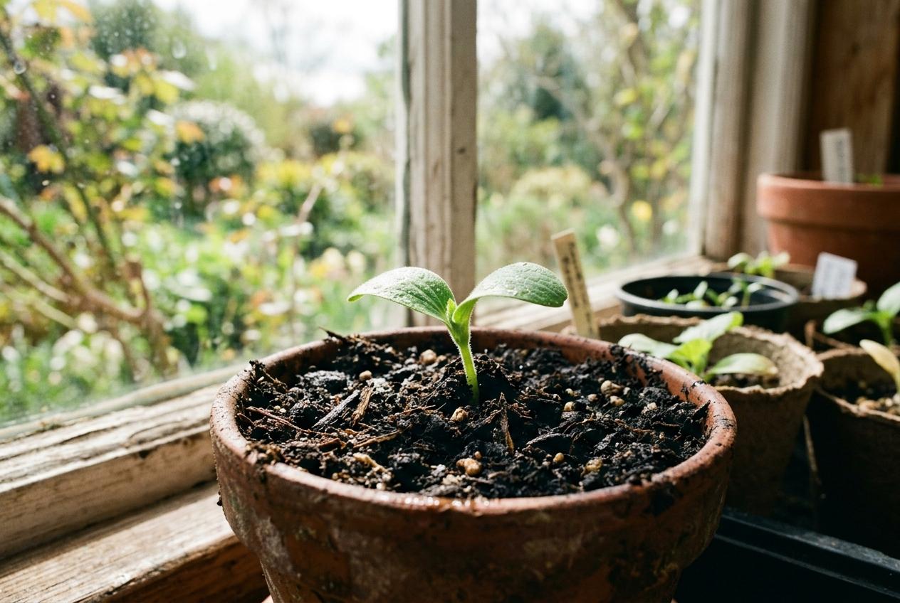Voranzucht im Haus (empfohlen): Die Voranzucht beginnt ab Mitte bis Ende April auf der Fensterbank. Setze die Samen einzeln in Töpfe mit 8 bis 10 cm Durchmesser, etwa 2 bis 3 cm tief. Verwende nährstoffreiche Erde, zum Beispiel eine Kompost- und Gemüseerde. Die Keimtemperatur liegt bei 18 bis 24°C, und nach 7 bis 14 Tagen zeigen sich die ersten Keimlinge.