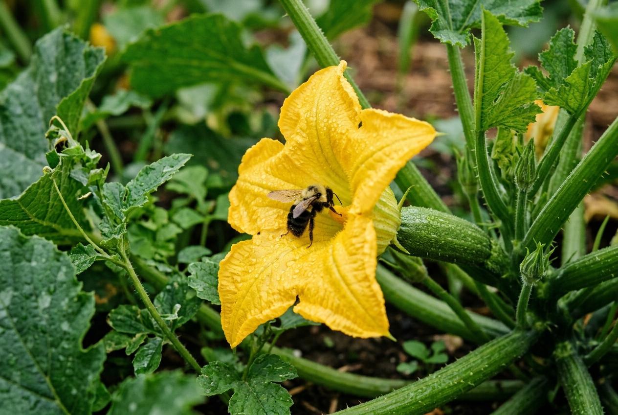 Wenn deine Zucchini viele Blüten, aber keine Früchte bildet, kann das zwei Gründe haben: Entweder fehlen bestäubende Insekten (Lösung: Handbestäubung), oder die Pflanze steht unter Stress und bildet überwiegend männliche Blüten. Sorge für gleichmäßige Wasser- und Nährstoffversorgung.